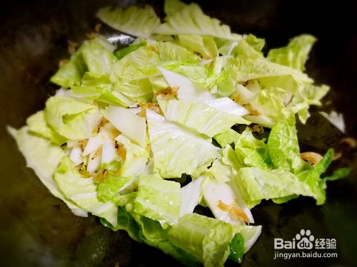 翻炒一会,倒入卷心菜,翻炒。