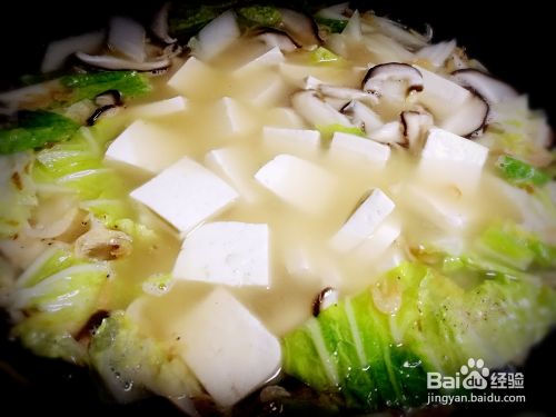 加入豆腐片,炖20分钟左右。大约15分钟,加入大蒜。