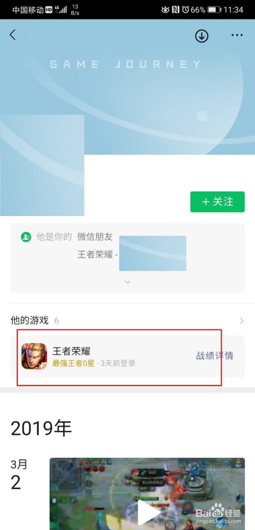 好友主页页面,找到他的游戏战绩详情,点击进入;