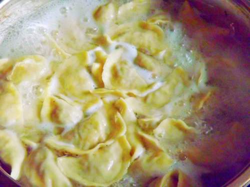该煮饺子了~饺子鼓起来再瘪下去就说明熟啦