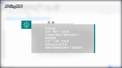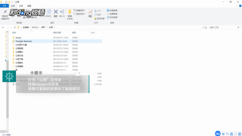 最后打开“公用”文件夹,找到steam文件夹,将刚才复制的名单补丁粘贴即可。