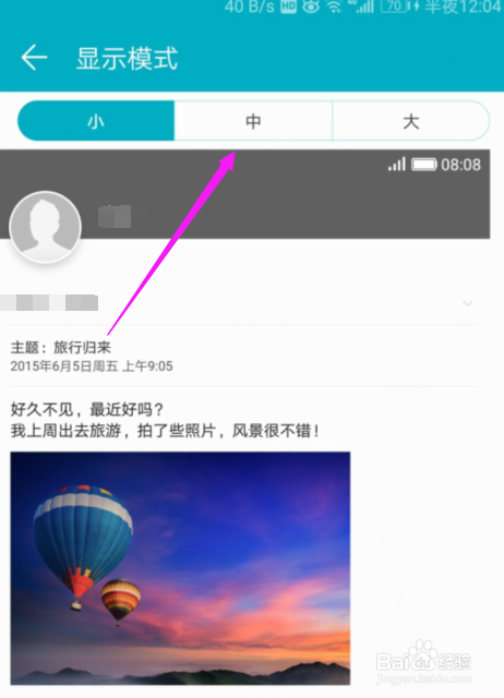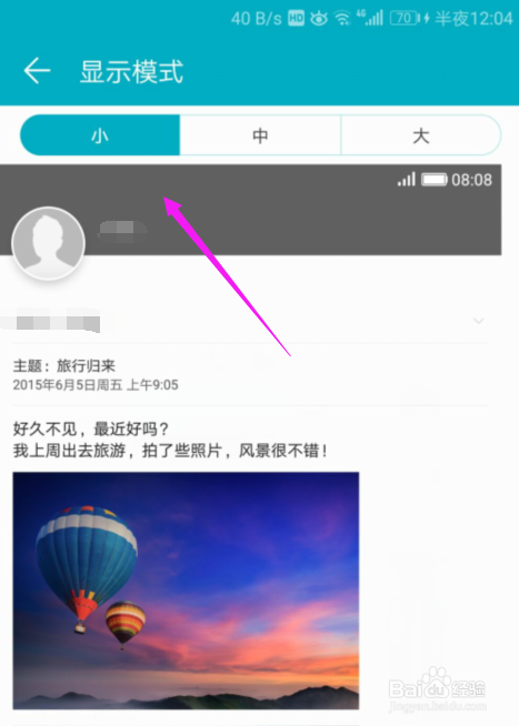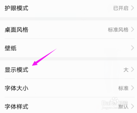 触开【显示模式】之后,我们手机系统设置的【大】,如图。
