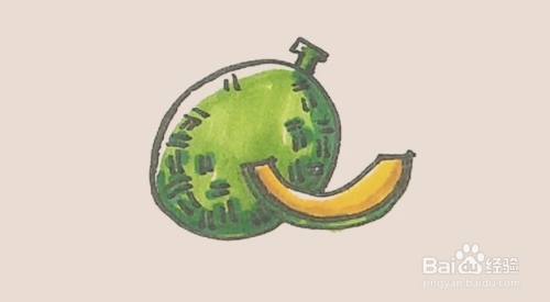 最后涂上好看的颜色,哈密瓜就这样画好了
