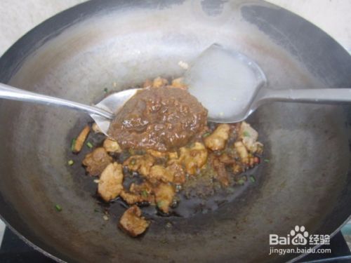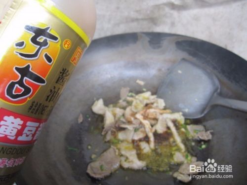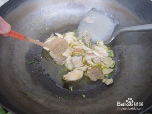 准备入锅步骤:热锅热油,放入肉片翻炒,放入葱末炒香,放入适量花椒粉翻炒