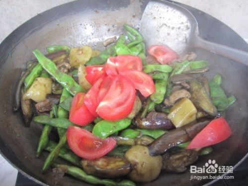 焖锅步骤:倒入酱油炒匀,放入一勺东北大酱炒匀,放入豆角翻炒片刻,在放入茄条和土豆块一起翻炒,将豆角和茄条炒塌后放入西红柿块翻炒均匀,加入适量清水,盖盖大火烧开,转中火炖熟。