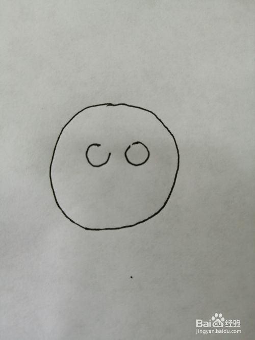 第二步,接着画出可爱的小狗的两只眼睛,眼睛圆圆的。