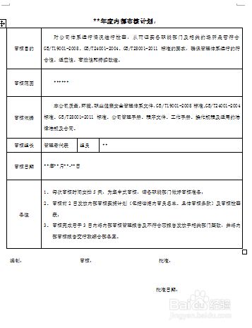 审核计划是一个大概的计划,我们要根据这个计划制定一个详细的内审实施计划