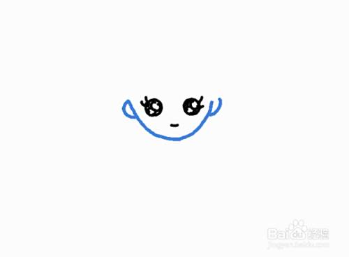 画上睫毛,并画一条短的水平线表示嘴巴。