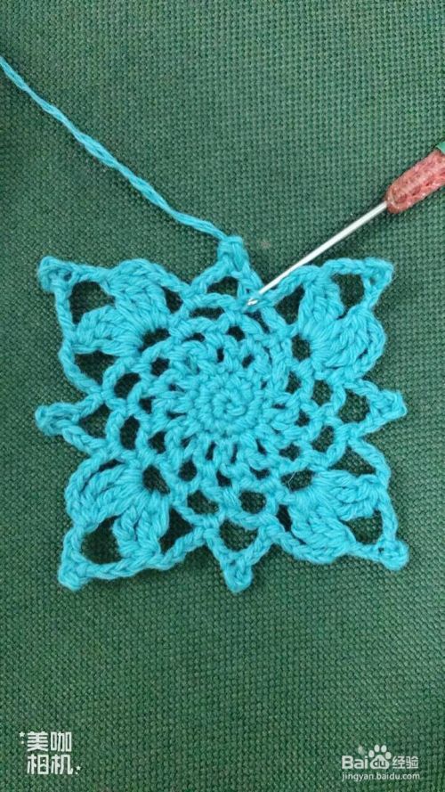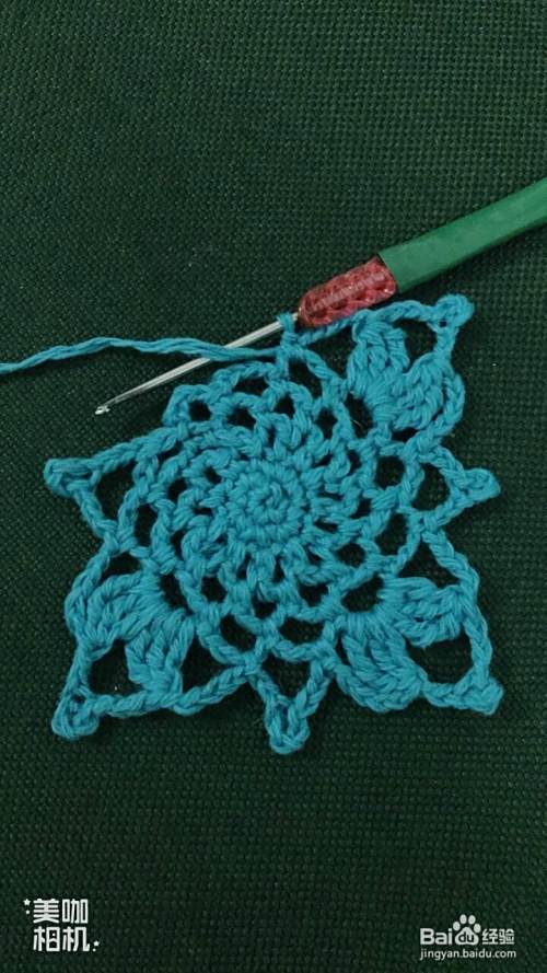 按照上一个步骤,在钩3次,这样一个漂亮的四瓣花水杯垫花样就编织完成了。