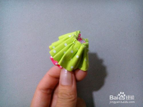 花瓣及叶子疏缝一圈,抽褶并适当收紧,如图