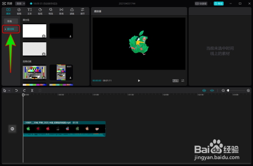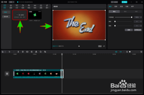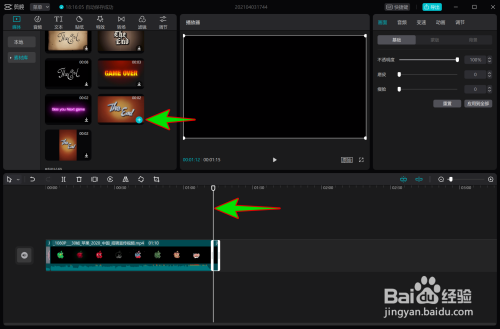 添加片尾,则先定位到视频素材最末端,然后点击片尾素材右下角小加号。