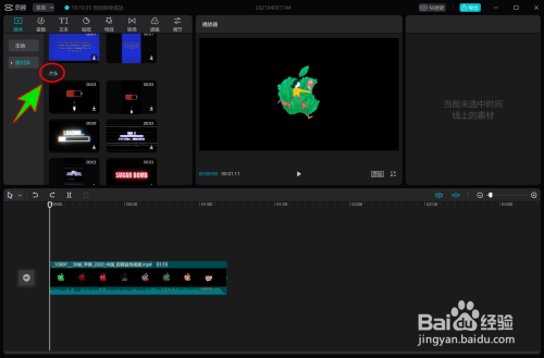 进入素材库后,在里面找到合适的片头或片尾素材。