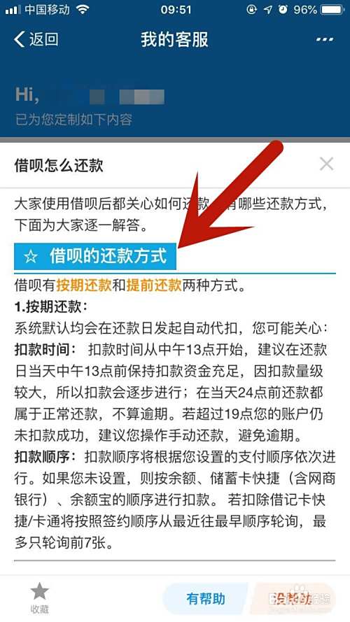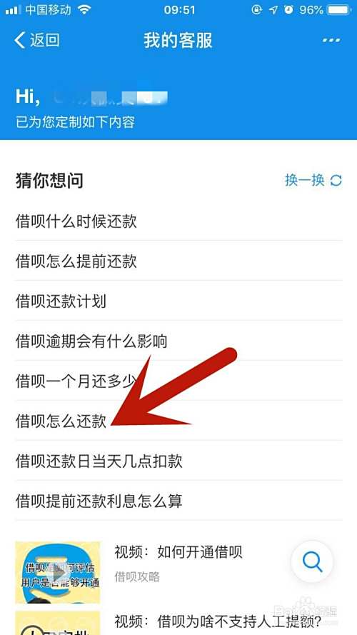 打开“?”之后,然后拉下来,点击还钱问题,如下图所示: