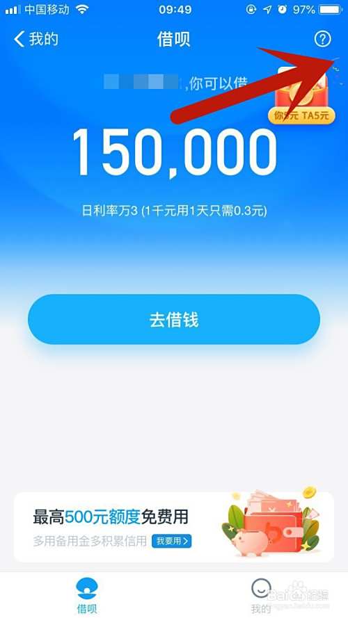 打开借呗之后,点击右上角的?,如下图所示:
