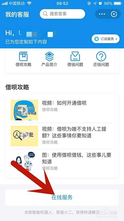 返回到还钱问题那个页面,拉下面你点击在线服务,如下图所示: