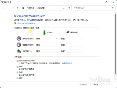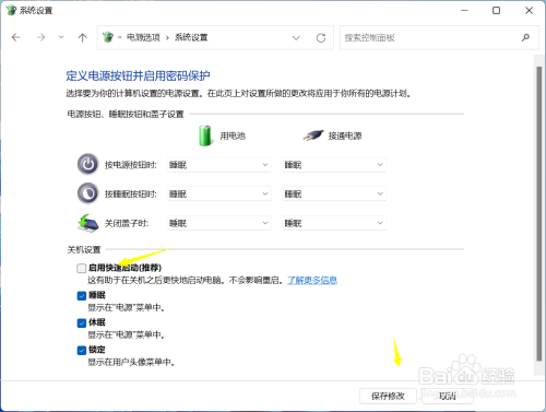 取消启用快速启动(推荐)前面的勾选,点击保存修改即可,如下图所示