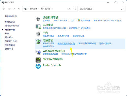 点击电源选项下面的更改电源按钮功能,如下图所示