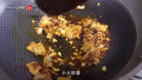 放入豆瓣酱、葱姜蒜,小火炒香。