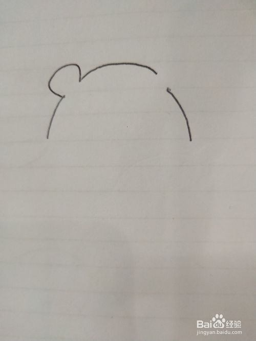 仓鼠一般在印象中都是胖乎乎的,傻得可爱,首先在纸上画三条曲线,可以看作是一个半圆擦掉左右两个空白,如下图。