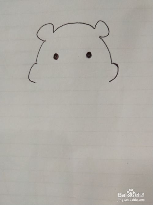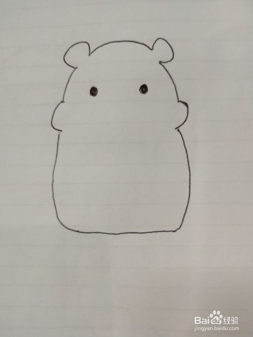 然后开始画眼睛,就在腮帮子和耳朵之间,在它大大的脑袋上,左右一边一个。