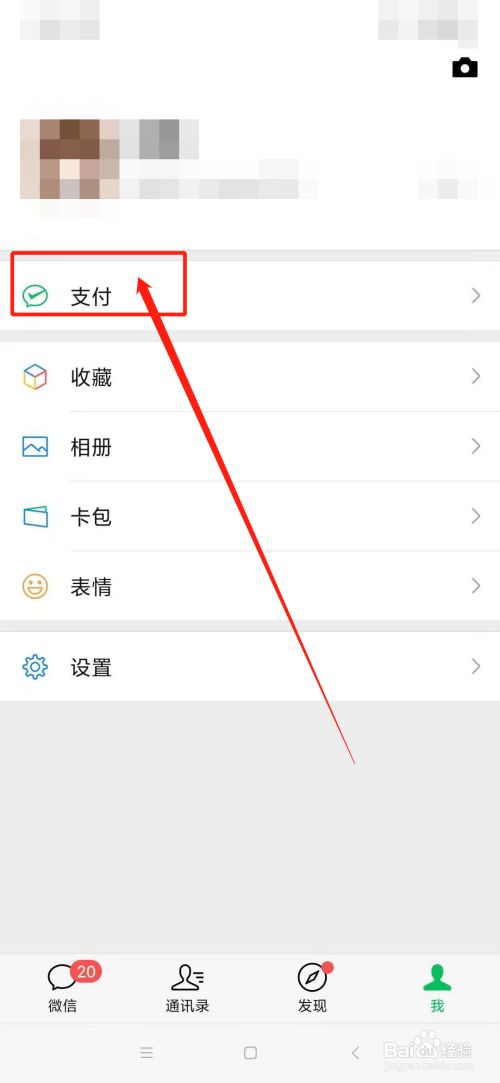 在手机上登录微信,在“我”的页面,点击“支付”。