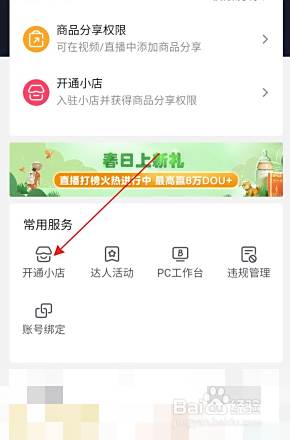 点击开通小店进入