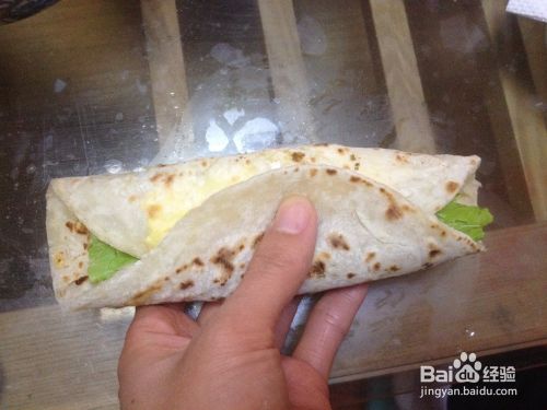 再抹上酱,放上生菜,卷起来就可以吃了。