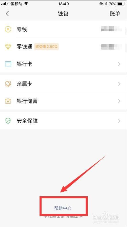 点击[钱包]最下端的[帮助中心];
