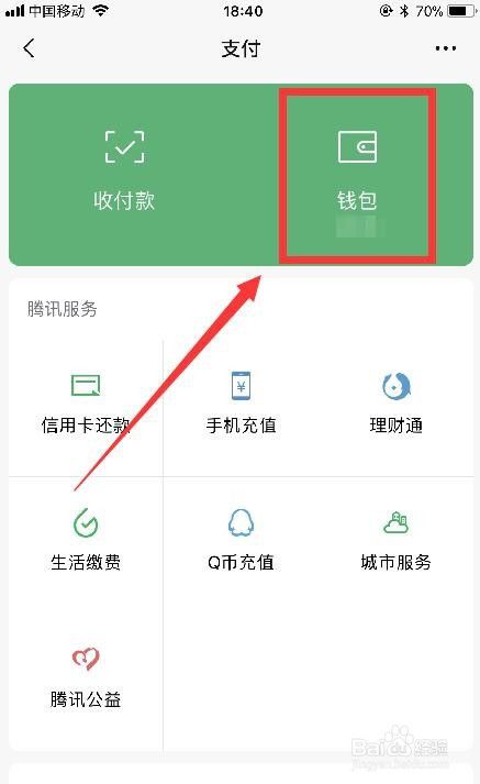 点击[支付]下的[钱包];