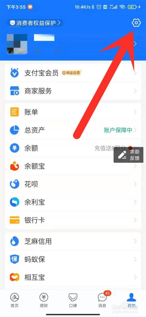 我们在支付宝我的界面,点击右上角的设置图标进入设置。