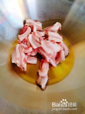 锅内加少量底油,冷锅下入五花肉翻炒!