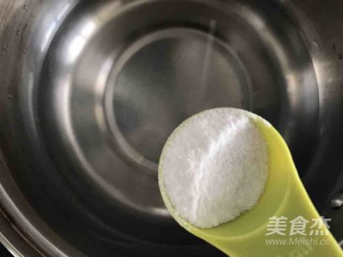 12搅拌均匀后煮沸,再倒入50g白砂糖,煮至白砂糖溶解