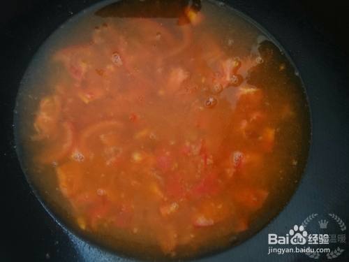 热锅倒油,煸香蒜末,倒入西红柿煸炒出红汁来。