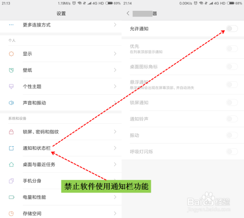 禁止软件使用通知栏功能。