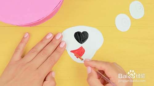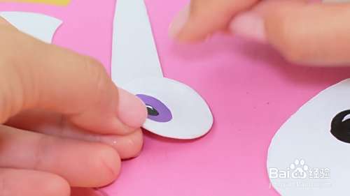 用一个长方形的泡沫片沿着熊头的边缘粘上