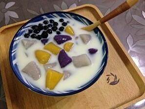 2.煮芋圆的时候先煮地瓜和芋头,后煮紫薯,因为紫薯会掉颜色,染到其他两种就不美貌啦!