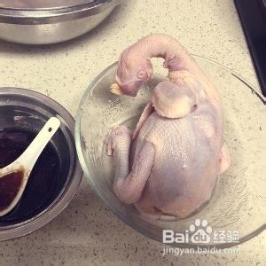 勺两勺酱料进鸡肚子,其他的淋上去腌制。