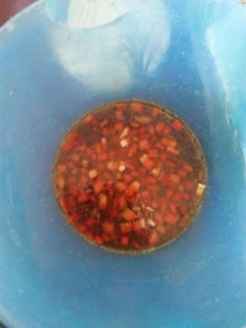 2锅贴饼的浇汁先调好,水,盐,椒盐,鸡粉,五香粉,生姜粉,蒜蓉,番茄酱,香油,酱油,红椒碎,搅匀待用