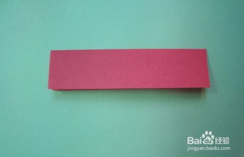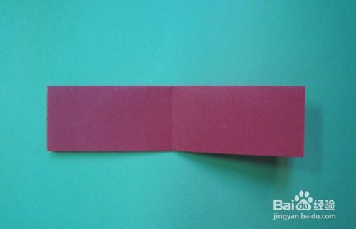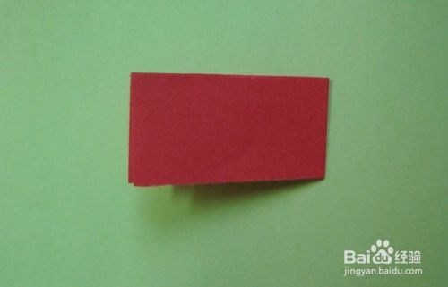然后,将双层的小长方形红色彩纸向中线对折,并压平整,如下图所示。