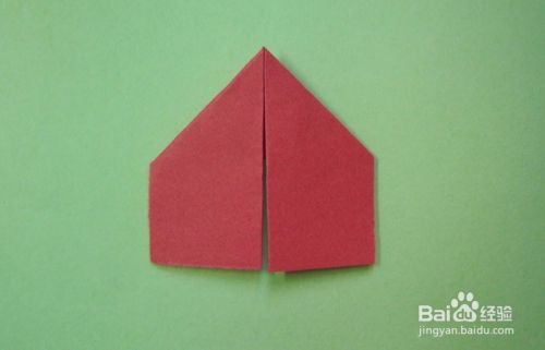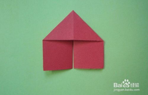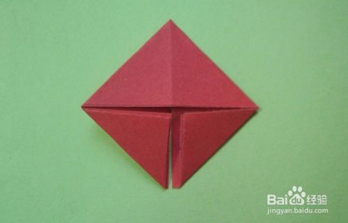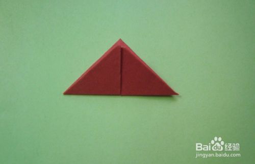 然后,把折好的红色彩纸左边和右边各向中线对折为,三角形,如下图所示。