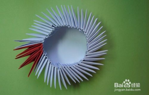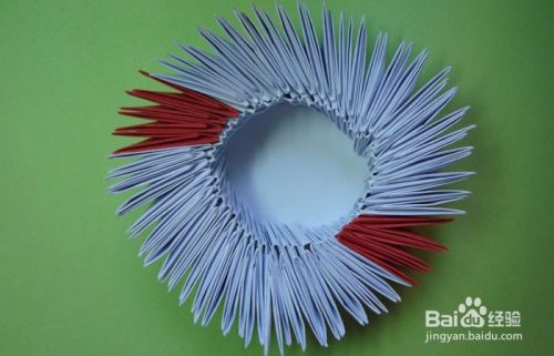 最后,用白色三角插连接,红色三角插需要对称连接,这样就好看些。第二层也拼装成圆形,这样简单碗就做好了,如下图所示。大家也来做做吧。
