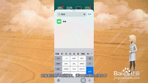 弹出搜索小组件窗口,在搜索栏输入电池搜索,弹出电池图标点击打开。
