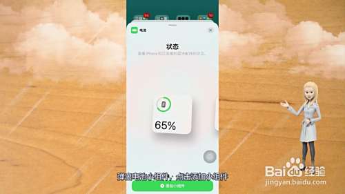 弹出电池小组件,点击添加小组件,桌面显示电池百分比小组件,点击完成即可。