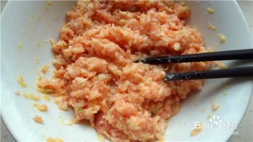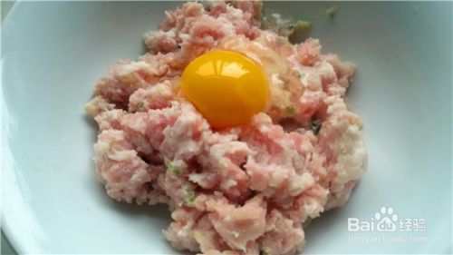 在肉泥中加入一个鸡蛋和适量的盐,搅拌均匀,朝着一个方向搅,这样更有劲道。