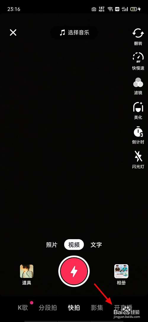 打开抖音,在拍摄选项下,打开直播选项,单击开始直播选项即可完成用手机开启直播。