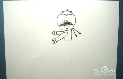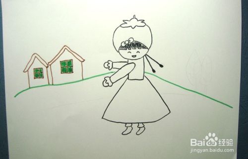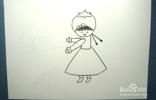 然后,用黑色的彩色笔画出学跳舞的小女孩的裙子和腿脚的图形出来,如下图所示。