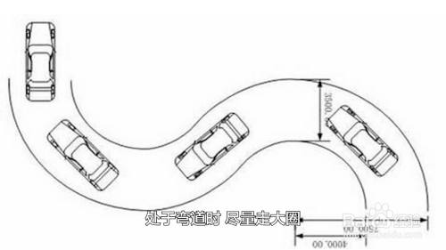 处于弯道时,尽量走大圈,驶向右弯道时,右轮紧贴着右边路边缘线。