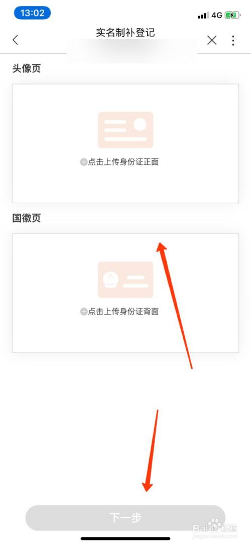 上传自己的身份证点击下一步即可