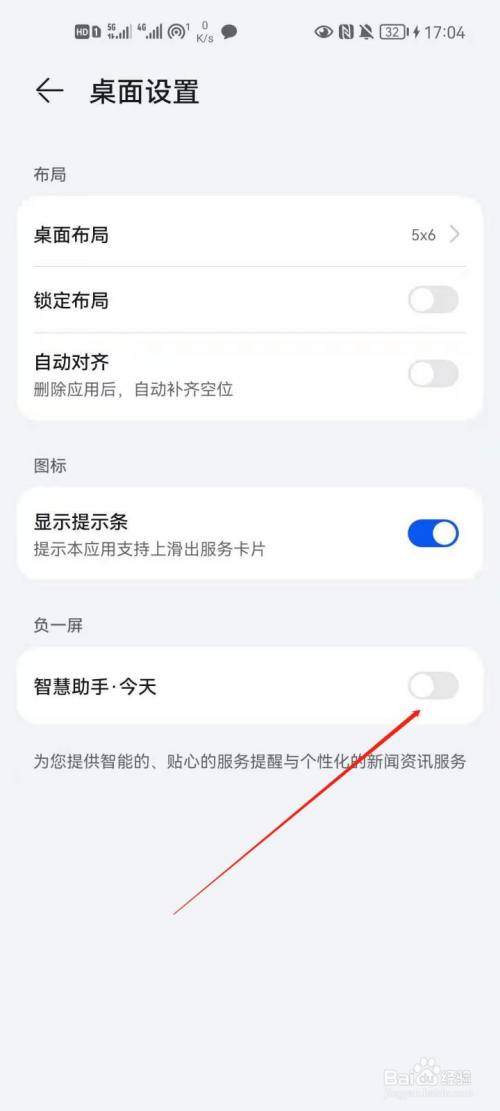 3、进入桌面设置后,点击关闭负一屏智慧助手·今天即可