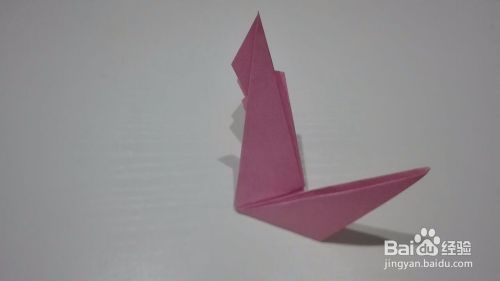 折叠好后,我们按照(图1)的样子折叠彩纸,然后再给孔雀折一个头(如图2)然后我们再调整一下彩纸,那么我们的孔雀就制作完成啦。(结果如图3)